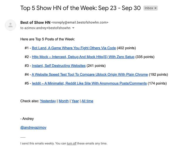 #showhntop auto email working (test mode)