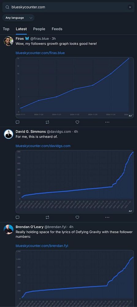 See people share their follower charts using new "Share to Bluesky" button