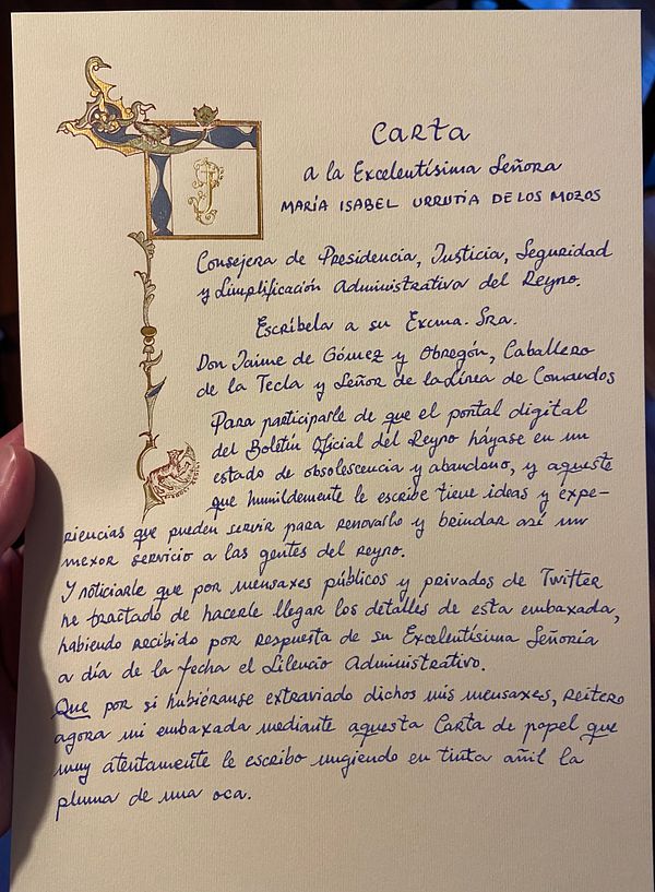 Wrote a letter as if it was 1768 trolling a minister of the local government because she didn’t reply me on X
