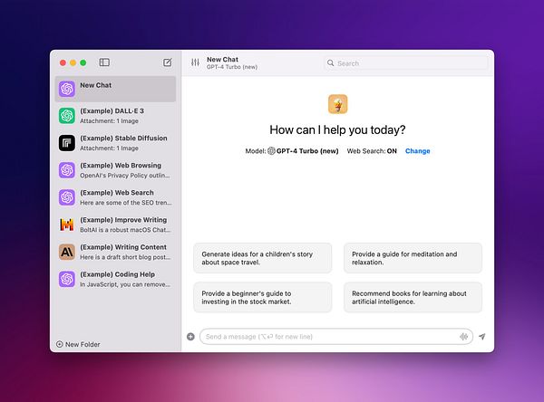 BoltAI is a native ChatGPT app for Mac. It allows you to integrate AI assistances into your daily tasks.