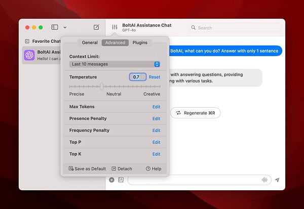 BoltAI is a native ChatGPT app for Mac. It allows you to integrate AI assistances into your daily tasks.