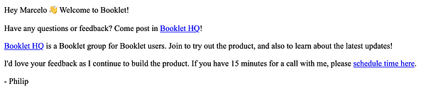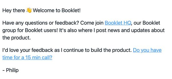 Set up a Calendly link to organize user research calls. I plan to put the link in a "welcome" email to all new