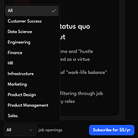 Get weekly notifications when companies renowned for sustainable work culture, work-life balance, and calm workplaces post job openings. $5/year subscription.