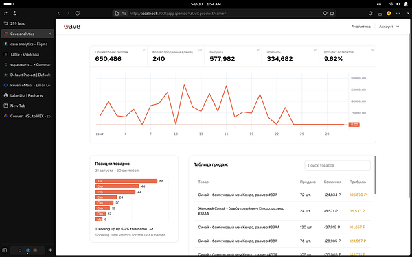 A website for marketplaces analytics for CIS market where users can analyze charts and all sales values of their goods.