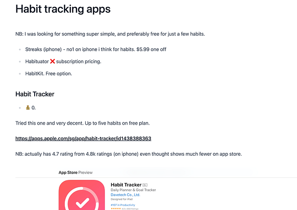 First proper entry on Habit tracking apps