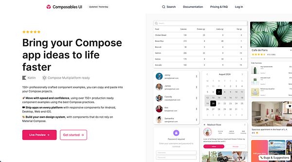 150+ professionally crafted components and screens, you can copy and paste into your Compose projects.
