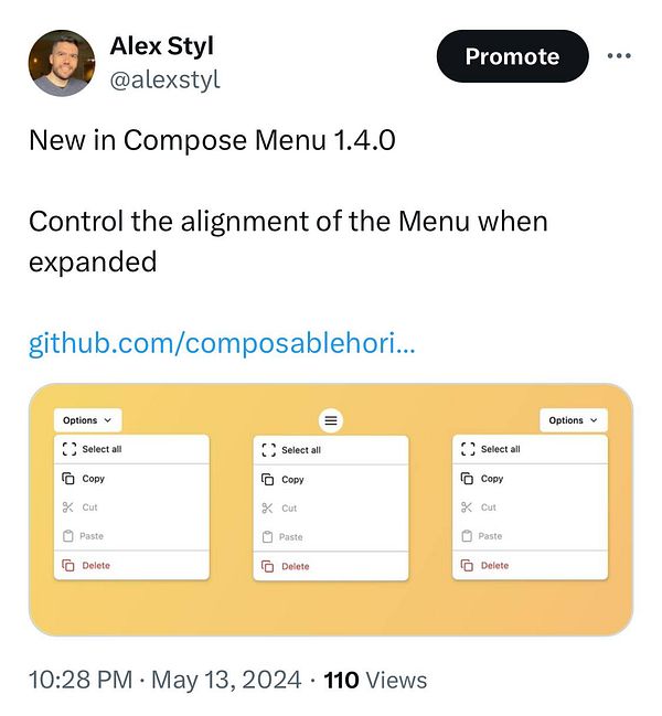 Ship new Compose Menu lib update with option to align the menu content to the button