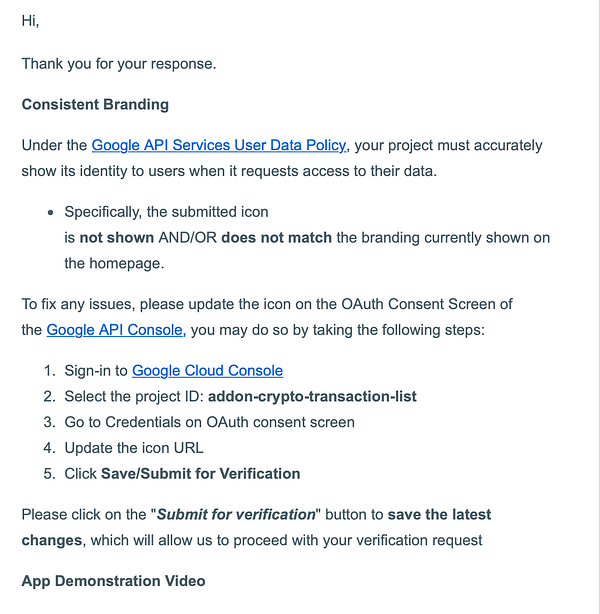 Got a feedback from Google about Auth2 screen. Updated and sent again for review