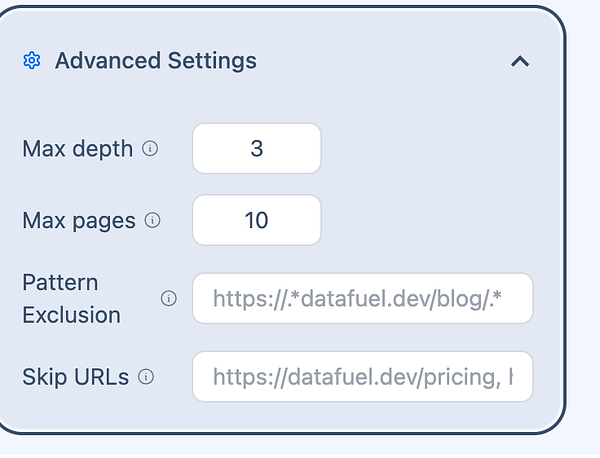 DataFuel API scrapes entire websites and knowledge bases in a single query.