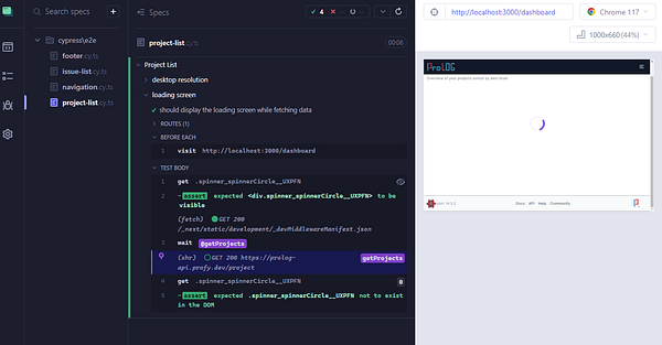 create cypress test for loading screen #reactjobsimulator