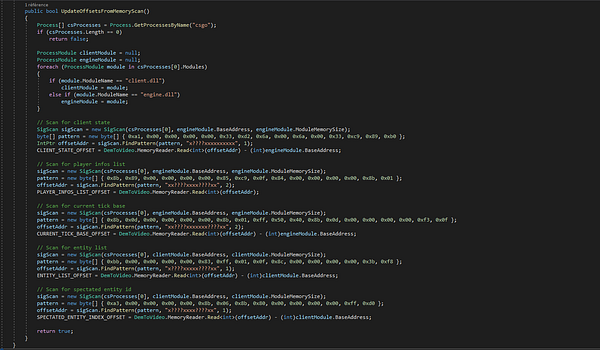 Retrieve offsets from csgo by doing AOB scan instead of finding and updating them manually after each game update