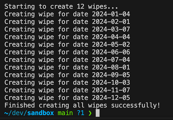 Write and run script to auto schedule the next year's worth of server wipes: twitter.com/ben_makes_stuff/s… for dynamicduo.gg