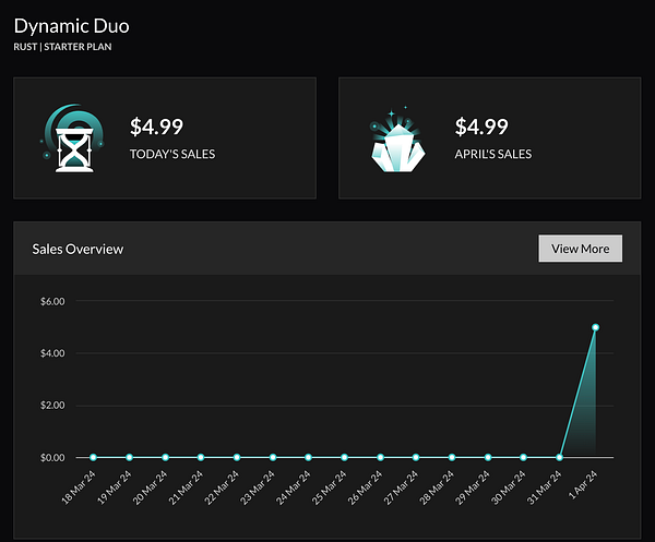 Get a new VIP subscription sale from a random player on dynamicrust.com, now at a whole $10 in MRR 🤑