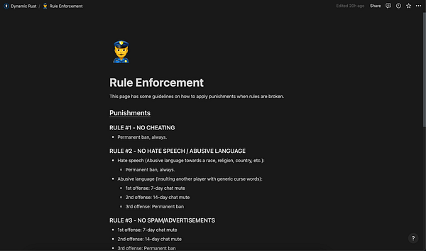 Create some guidelines for admins to help us consistently enforce rules on dynamicrust.com