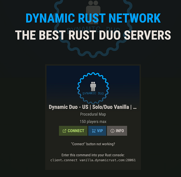 #dynamicrust 's domain is very expensive for no reason. Register dynamicrust.com for $9 instead of $66 for dynamicduo.gg and let the .gg domain expire !private