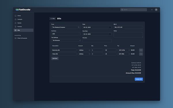 #fastbooks - completely revamped the Bills module UI for better consistency across the platform. Small wins add up. 🚀