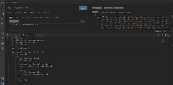 setup a basic scrapper on Python to get context of the projects when user add a new project to