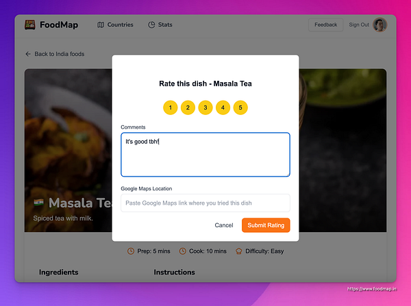 Explore and rate foods from around the world