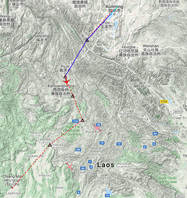 fly from Kunming ZPPP and land in Chiang Mai VTCC in Infinite Flight ending 4 legs of flight sim from Seoul RSKI