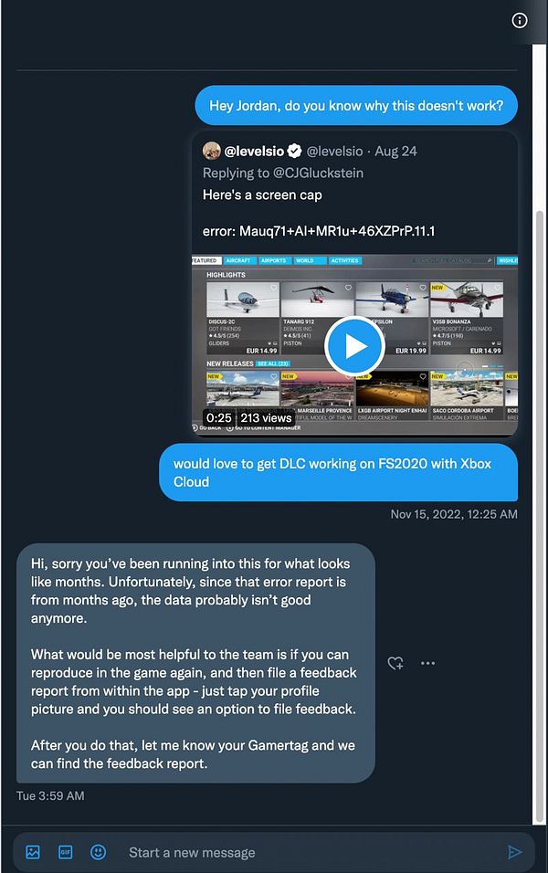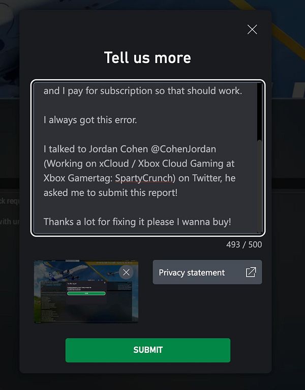 file bug report for @CohenJordan from Xbox Cloud to fix bug so I can buy planes in FS2020