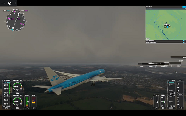 get live traffic in FS2020 on map (real life + multiplayer) and fly Heathrow to Luton in KLM 787
