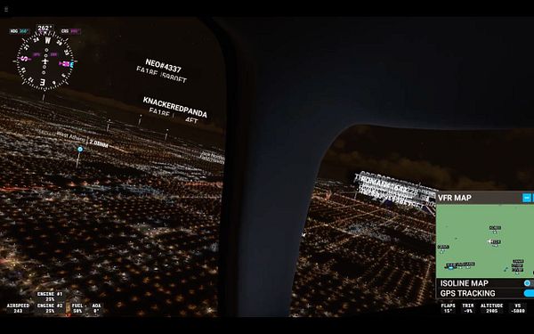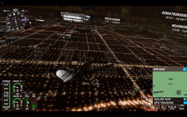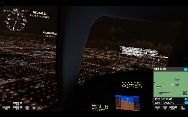 fly in Los Angeles at night in FS