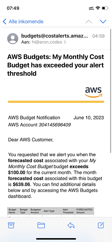 Wake up to anxiety-inducing AWS budget monitor notification