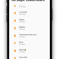 Track daily steps and no sugar days with streaks.