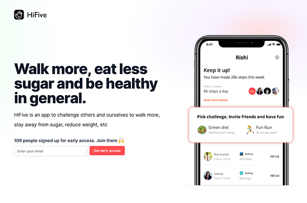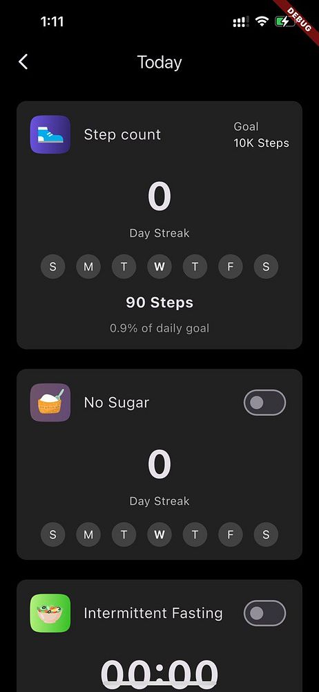 Track daily steps and no sugar days with streaks.
