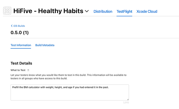 Release one more testflight version (0.5.0) to prefill data in BMI calculator if its entered in the past