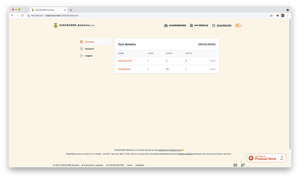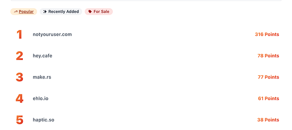 Shipped a new point system for domains. This replaces view/visit/like counts