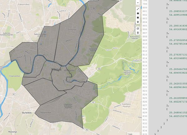 draw Vilnius neighborhoods GeoJSON