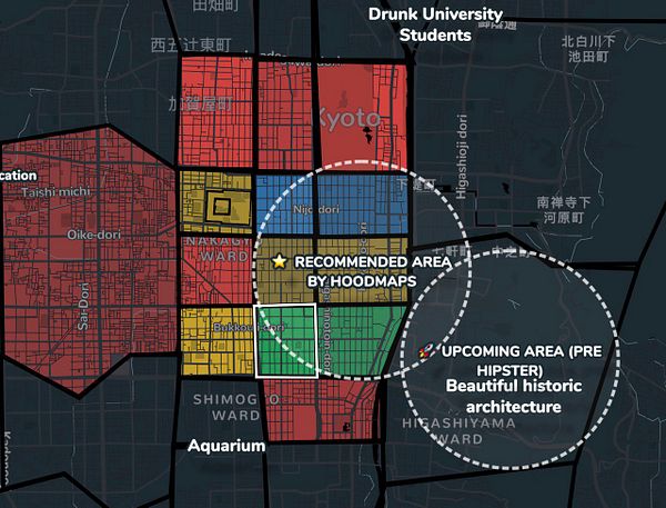 subdivide Kyoto even further into blocks east west north south etc. because it's too granular of a place