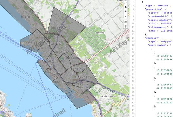 draw Zadar neighborhoods manually GeoJSON