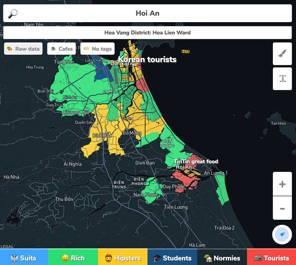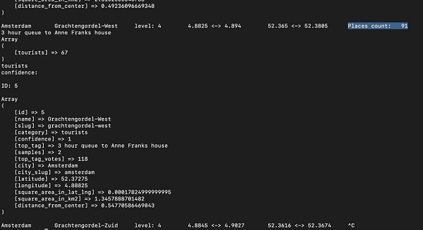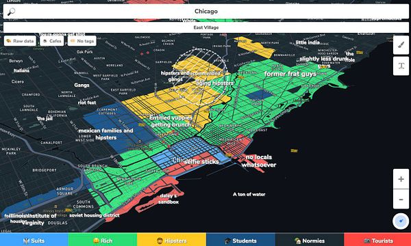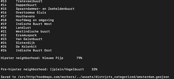 #hoodmaps page descriptions based on GeoJSON neighborhood names and top tag there "Burgwallen-Oude Zijde: Stoned tourists OD on brownies, Grachtengordel-West: 3 hour queue to Anne Franks house, Grachtengordel-Zuid: Loud drunk/stoned/high tourists, Weesperbuurt/Plantage: 🐘🦍🐫🐊🐠, Haarlemmerbuurt: Little Venice, Oude Pijp: students with rich parents, Da Costabuurt: hipster tourists eating expensive food, Frederik Hendrikbuurt: American tourists, Helmersbuurt: expats that wish they were native, Vondelbuurt: tourist area of Vondelpark, Oosterparkbuurt: 6 different hipsterplaces owned by 3 guy"