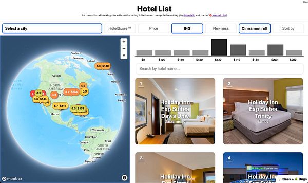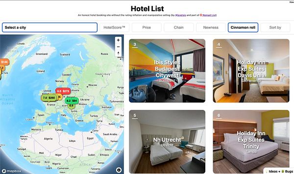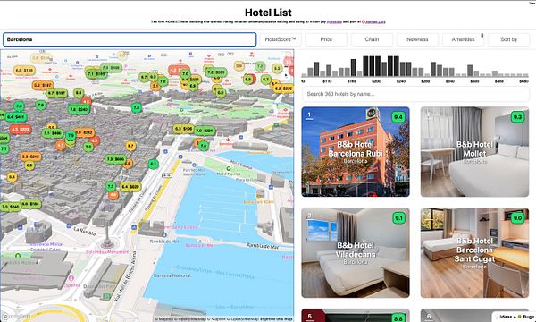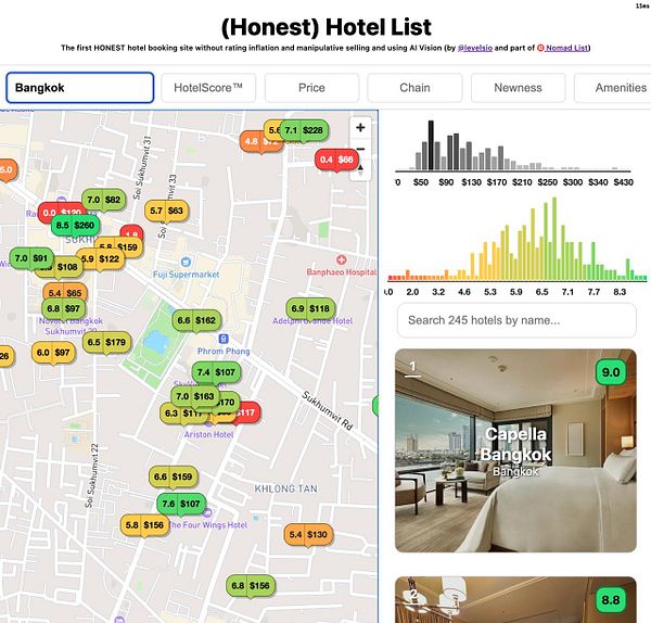 Live ranking of the best hotels without bullshit