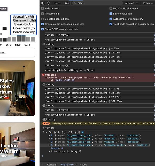 make multi select filter work after lots of debugging and find hotels with Steak and Jacuzzi