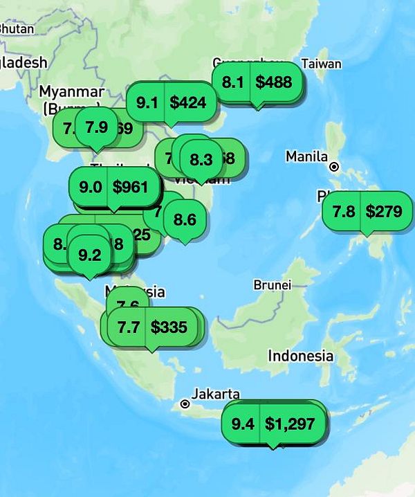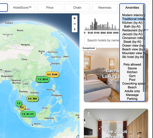 test and find hotels with the price and rating histogram slider in Bangkok that are highly rated and cheap