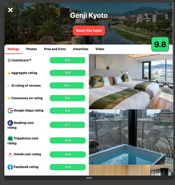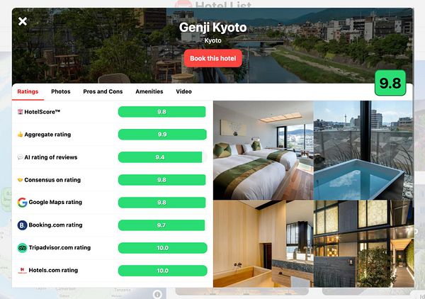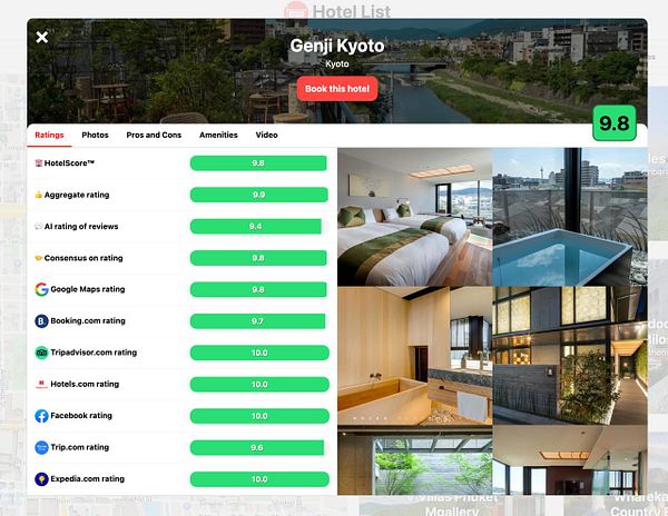 Live ranking of the best hotels without bullshit