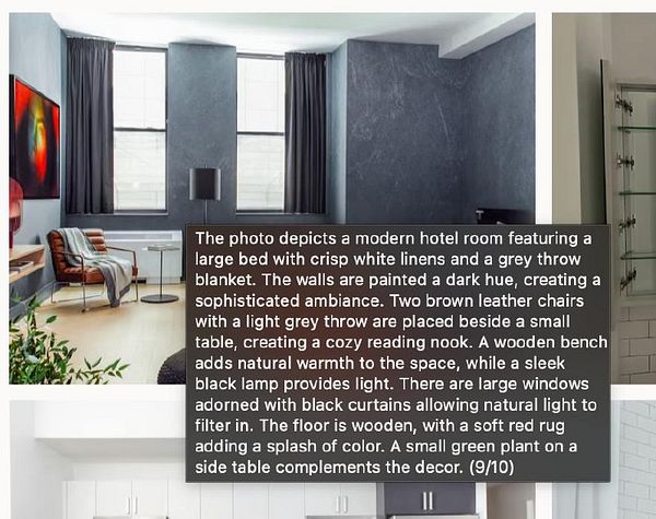 show AI description and rating on photos