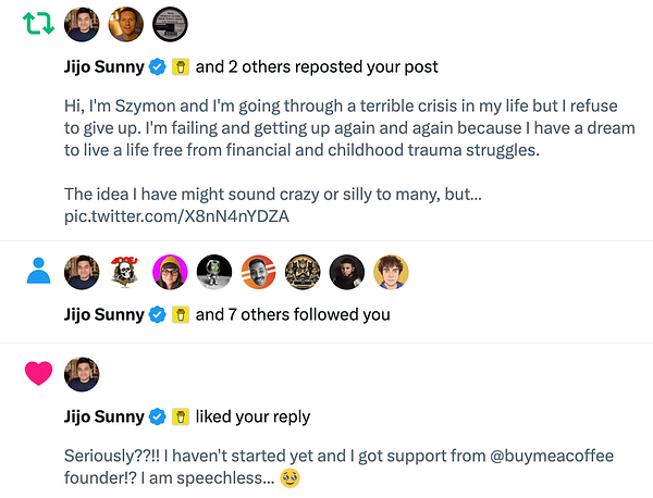 Things going fast... even before setting up BMAC profile, founder commented, followed and reposted... Mindblown! 🫣
