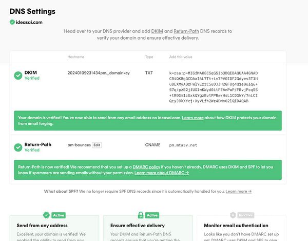 verify #ideasai on Postmark