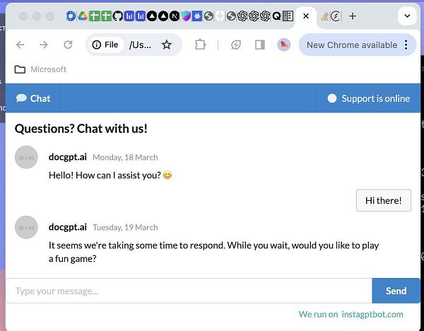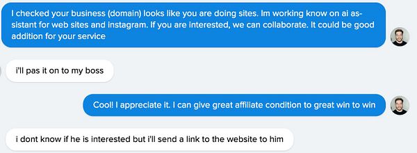 Befriended a customer from the chat support docgpt.ai, not losing the opportunity to upsell for the next project - instabotgpt.com