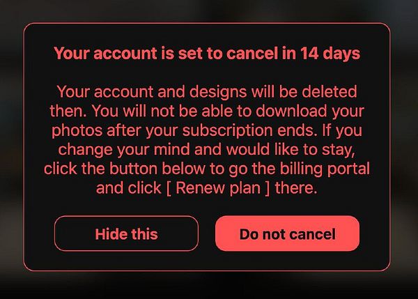 add message that you can't download your photos after cancelling because a user thought that was possible