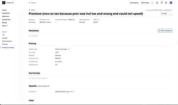 fix $99/mo plan didn't upsell to yearly because tax setting was mismatched