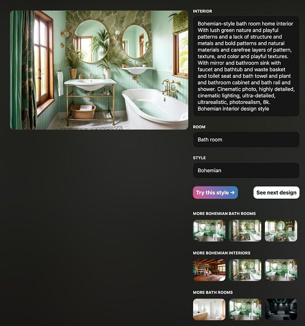 make [ select ] boxes for style and room type so you can browse through all interiors generated