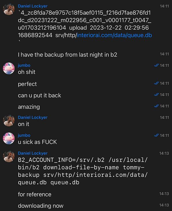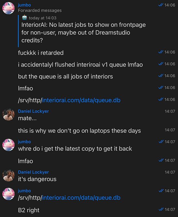 #interiorai v1 entire database of designs generated and then @daniellockyer saves it back from the backup from last night