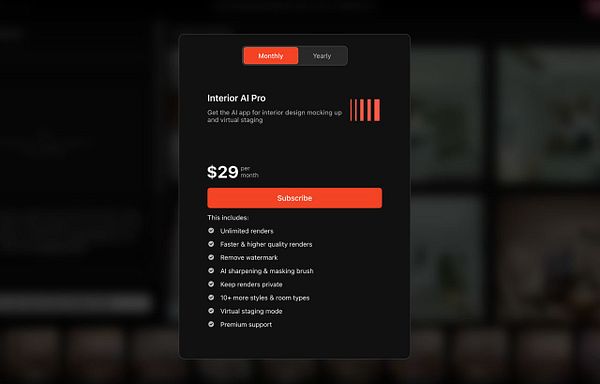 #interiorai now: 1) free, you get 1 free render but email required, 2) free+, you get more free renders after confirming your email, 3) pro, if you pay unlimited renders