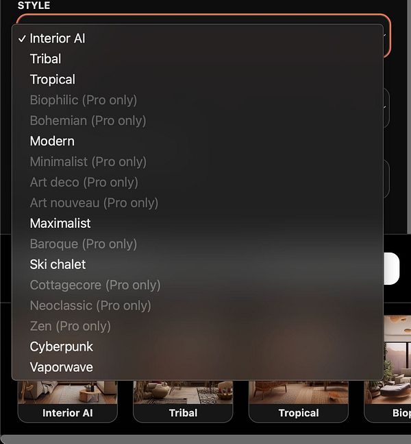 limit styles and room types to free accounts to incentivize to convert to Pro