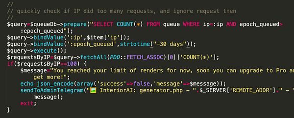 add IP limit of 100 reqs in 30 days